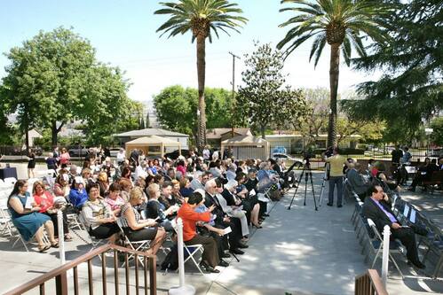 Among the dignitaries in attendance were Glendale City Councilman Ara Najarian, Glendale City Councilwoman Paula Devine, and representatives from the offices of Senator Adam Schiff and Los Angeles Councilman Paul Krekorian. Many Los Angeles area clergy and community leaders as well as members of the Armenian press were also present. The Centennial Khachkar was funded by the collective donations of friends and members of the Church and carved by craftsman Gaspar Gharebyan. The stone itself was imported from Armenia and carved in Glendale, CA. The dedication service was organized by Hakop Hovanisyan and Sevag Shanlian and volunteers from the Church served as greeters and ushers.