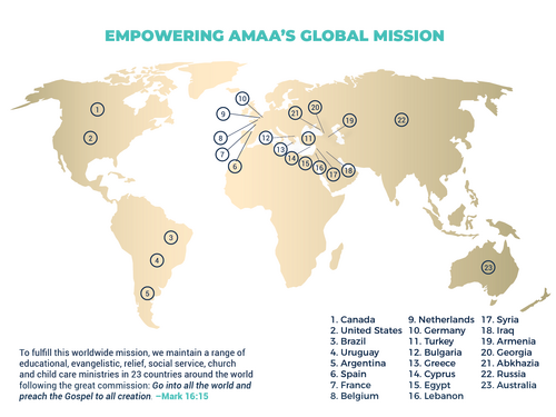 Armenian Evangelical Brethren Church is passionate about reaching people with the Gospel. We are thankful for our church ministries here in the Los Angeles area that reach people, but we also have a great burden to reach people around the world. We are partners with Armenian Missionary Association of America (AMAA), who maintain a range of educational, evangelistic, relief, social service, church and child care ministries in 24 countries around the world.